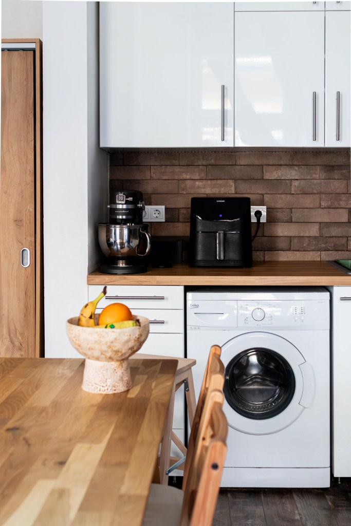 2023 januárjában bővült a konyha alsó része is: a sütő és a hűtő arrébb került 60 centiméterrel, a sütő helyére pedig bekerült egy mosogatógép. Régi vágyam volt, teljesen más vele az élet, nem kell azon aggódnom, hogy ha egy összetettebb süteményt készítek, mennyi idő lesz elmosogatni majd az ahhoz szükséges eszközöket.