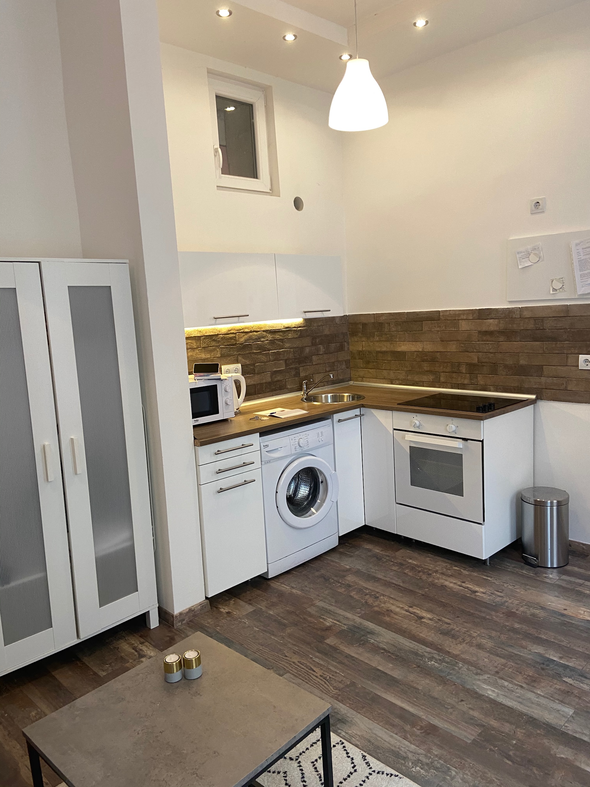 2020 végén költöztem be a lakásomba, amiben akkor egy a mostaninál sokkal rövidebb munkalap, néhány konyha alsószekrény, illetve két kisebb felfúrt szekrény fogadott. (A kettőből egy maradt mostanra, a nyitóképen bal fent látható!)